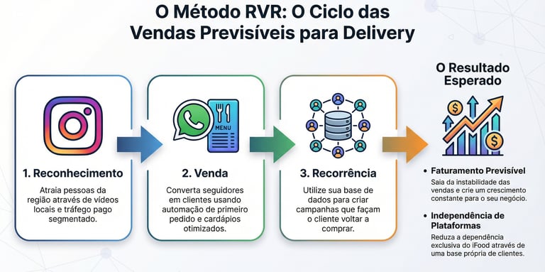 Aprenda a estrutura simples que faz um delivery sair da estagnação e começar a vender todos os dias com clientes novos e recorrentes.